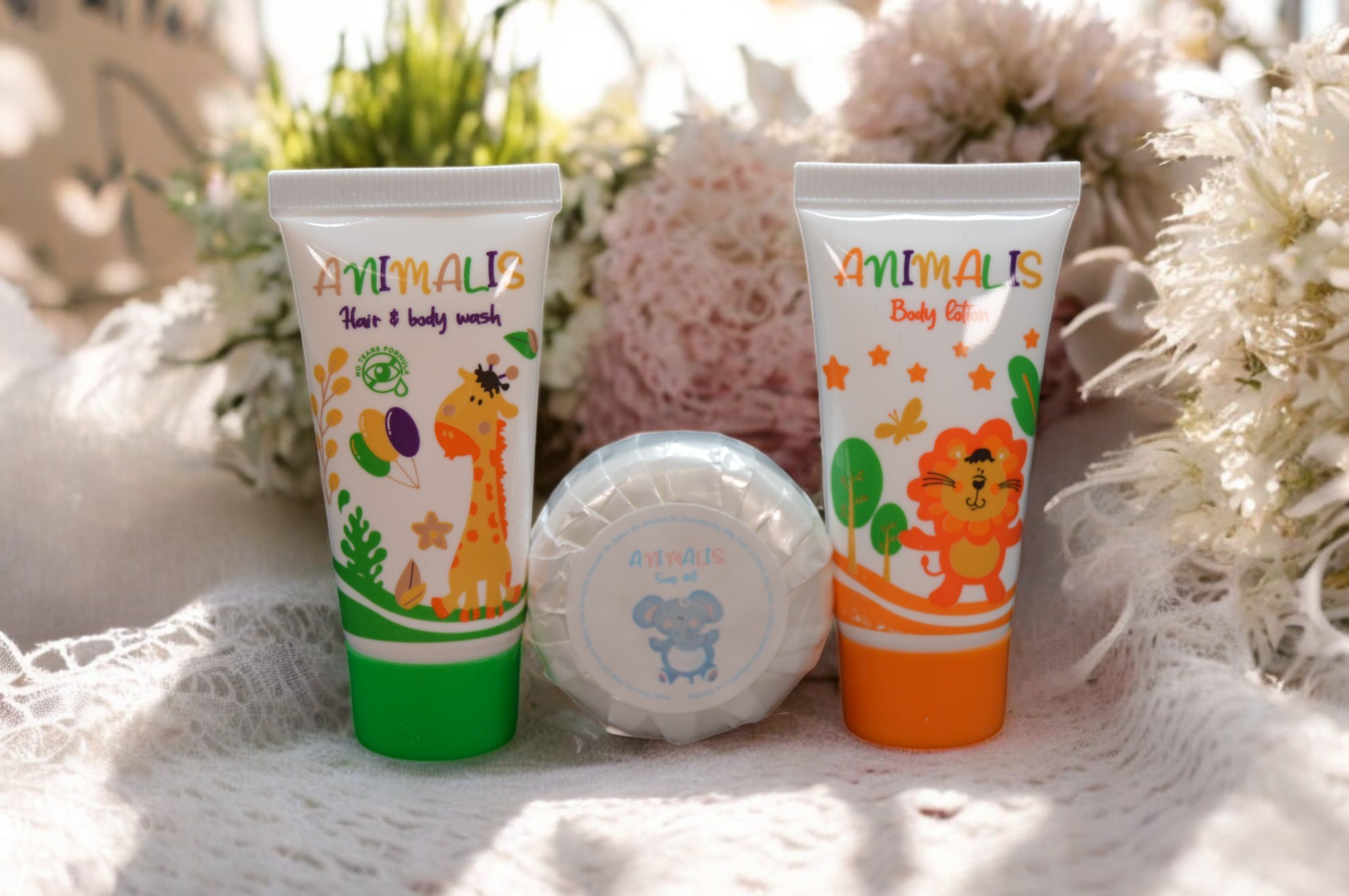 Nasza seria kosmetyków dla dzieci ANIMALIS została stworzona specjalnie z myślą o najmłodszych gościach. Dzięki delikatnemu zapachowi, kolorowemu designowi i wesołej buteleczce, nawet najmłodsi poczują się wyjątkowo. Ekonomiczne kosmetyki dla dzieci dodadzą każdemu pokojowi hotelowemu wyjątkowego charakteru.
