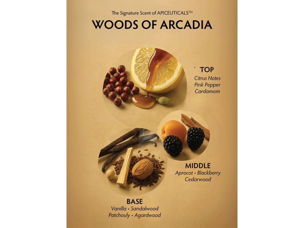 ZAPACH – Doświadcz prawdziwej utopii błogości z przyprawową bazą wanilii i drzewa sandałowego, przechodzącą przez zmysłowe serce cedru i jeżyny, kończąc na niebiańskich górnych nutach cytrusów i różowego pieprzu. To „Lasy Arkadii” – delikatne, złote i cicho mocne