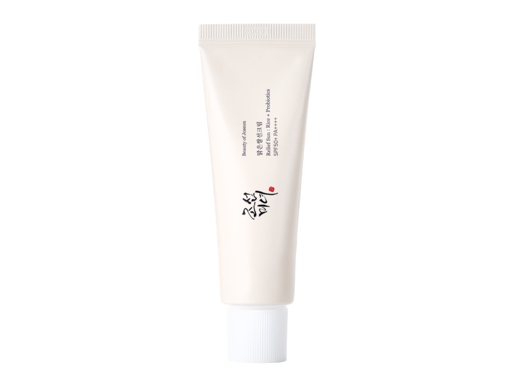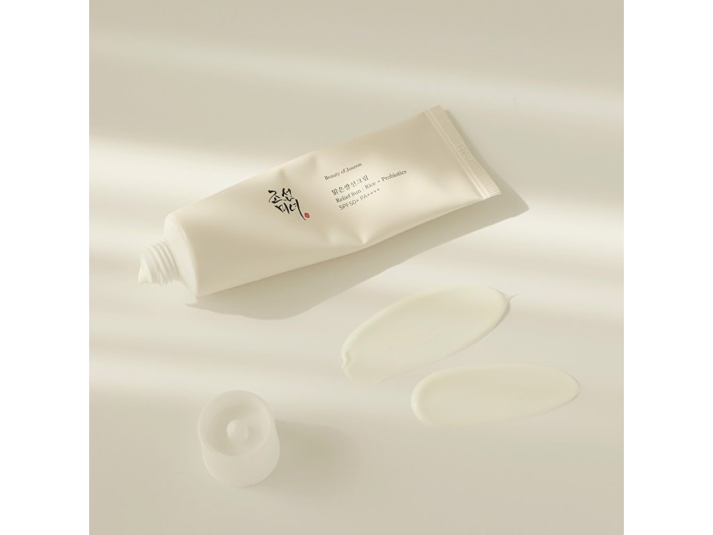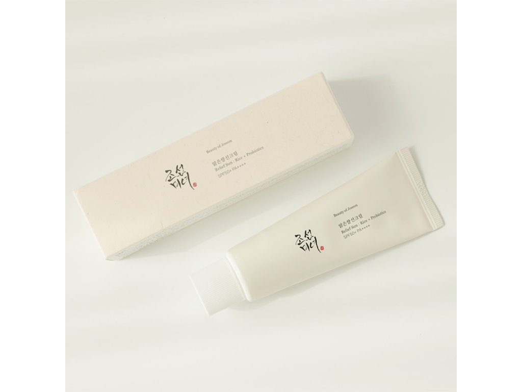 Beauty of Joseon - Relief Sun Rice Probiotics - SPF50+/PA++++ - Krem chroni przed szkodliwym działaniem promieniowania UVA i UVB. Zawiera 30% ekstraktu ryżowego, który działa antyoksydacyjnie i neutralizuje wolne rodniki powstałe w wyniku promieniowania UV, a także filtry chemiczne, które skutecznie zapobiegają przenikaniu promieni słonecznych do głębszych warstw skóry. Produkt został dodatkowo wzbogacony biofermentem bakterii kwasu mlekowego, który nawilża i zapobiega powstawaniu niedoskonałości, a także wygładzającą adenozyną i odżywczą witaminą E. Krem szybko się wchłania, ma przyjemny zapach i zapewnia satynowo-rozświetlające wykończenie, nadając skórze efekt „szklanej skóry”. Krem ma lekką konsystencję, nie klei się i nie pozostawia białego filmu. Produkt wegański, bazujący na składnikach pochodzenia naturalnego.