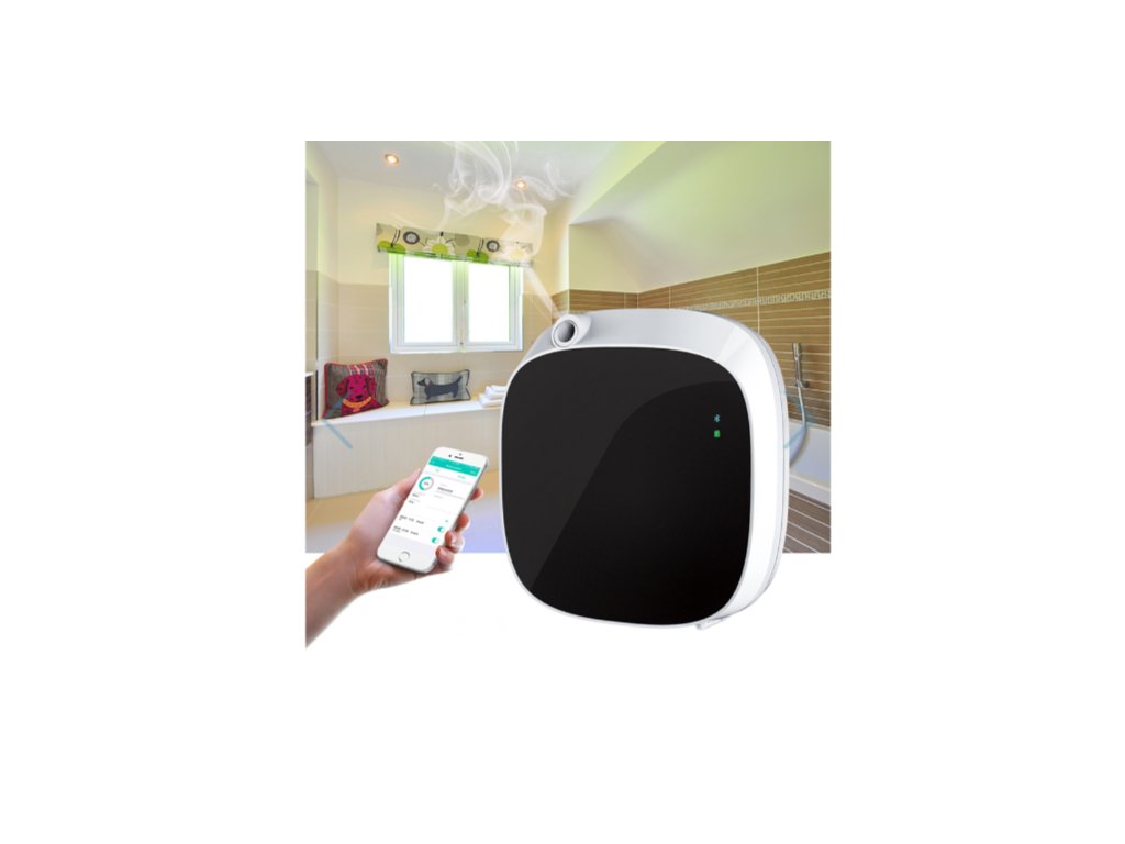Zasilanie bateryjne lub za pomocą adaptera zapewnia nieprzerwaną dostawę zapachu. Idealny do pomieszczeń o słabej wentylacji, takich jak toalety, łazienki, salony i studia. Bezproblemowo integruje się ze smartfonem i można go łatwo zainstalować na dowolnej ścianie, wystarczy podłączyć. Dostępnych jest 10 intensywności dozowania zapachu. 100 ml oleju może normalnie dyfundować 6300–6700 razy.