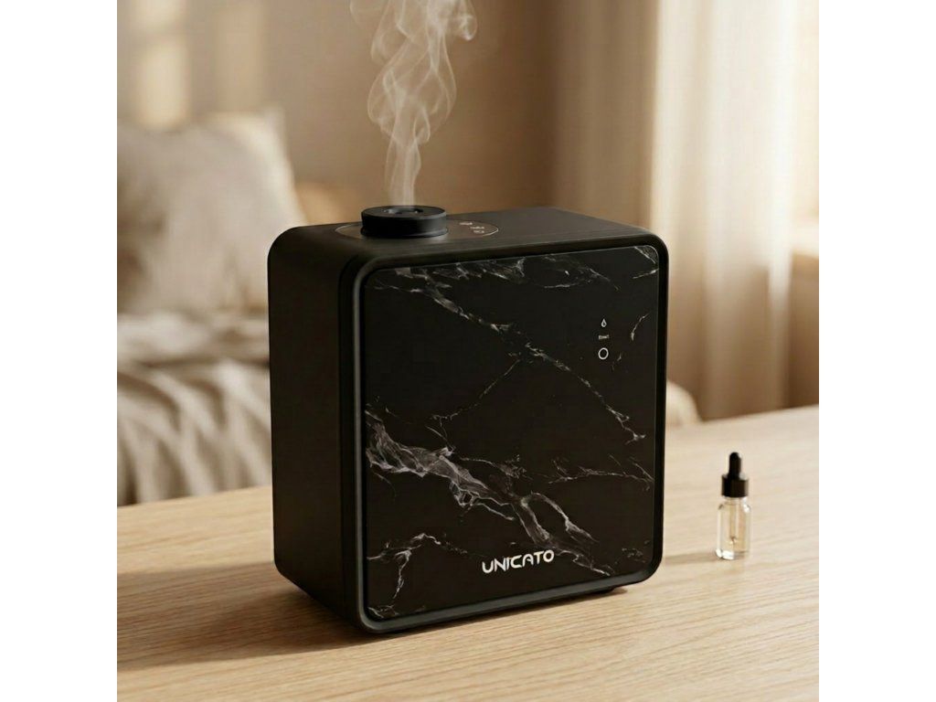 Ten designerski dyfuzor MARBLE-L doskonale wpasuje się w każde wnętrze. Zasięg do 1700 m² sprawia, że jest idealny do dużych przestrzeni, takich jak recepcje hotelowe, showroomy, centra handlowe, sklepy itp. Dyfuzor rozprowadza olejki eteryczne w powietrzu, poprawiając zapach w pomieszczeniu oraz wpływając na nastrój i zdrowie.