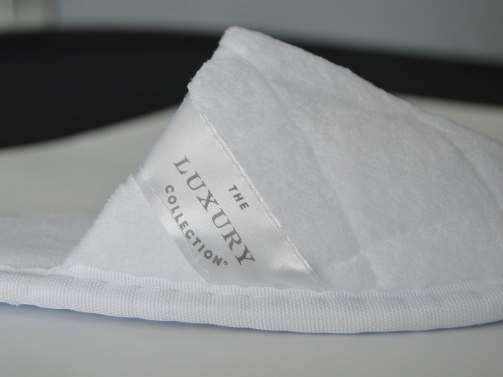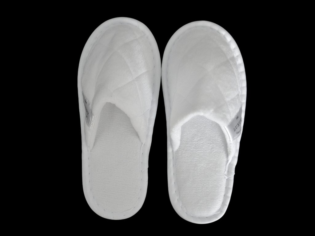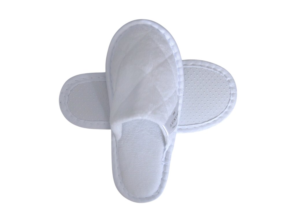 Pantofle LUXURY COLLECTION dla wymagających klientów i hoteli, które chcą pozostawić wrażenie ponadstandardowości. Podeszwa wykonana jest z materiału EVA o grubości 5 mm, odpowiedniego do wszystkich rodzajów podłóg, z wykończeniem antypoślizgowym. Dostępne są w rozmiarze 22 cm, ale istnieje możliwość pełnej personalizacji, w tym haftowanego lub nadrukowanego logo. Dostępne są w kartonie po 200 sztuk, każda para jest pakowana w oddzielny woreczek higieniczny.