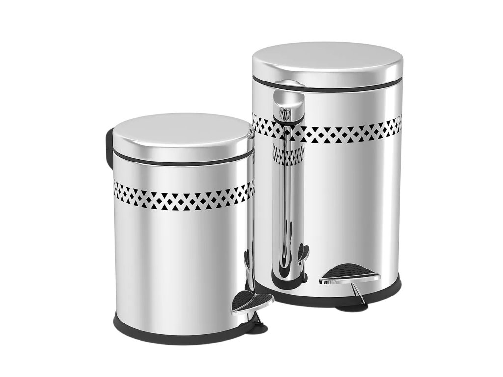 Kosz pedałowy MANUEL 8L – wewnętrzny kosz pedałowy ze stali nierdzewnej, higieniczny otwór otwierany pedałem, wyposażony w wewnętrzny wyjmowany pojemnik z tworzywa sztucznego, zaokrąglone krawędzie. System pedałowy: obsługa bez użycia rąk. Lekki i trwały materiał, nowoczesny i prosty wygląd.