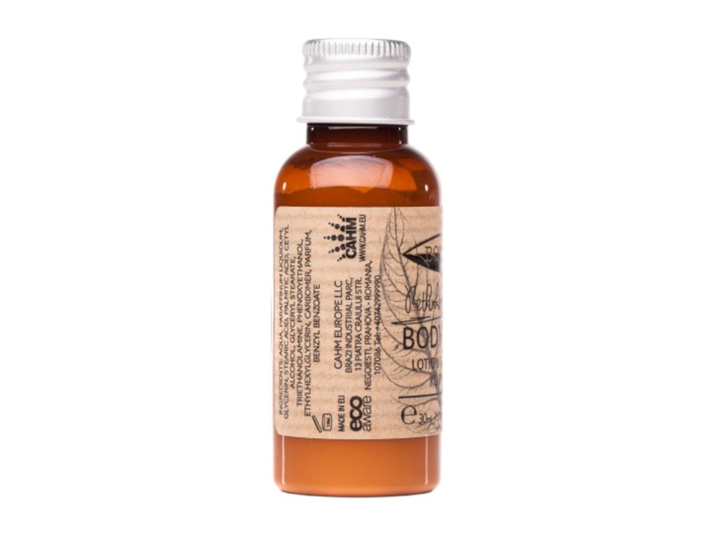 Krem do ciała Botanika Verbena & Bergamot wzbogacony jest delikatnym zapachem bergamotki z nutami werbeny, wanilii i olejku arganowego, tworząc relaksujące, ciepłe doznania zapachowe, które zwiększają komfort codziennej pielęgnacji. Intensywnie nawilża, odżywia i regeneruje skórę, pozostawiając ją jedwabiście gładką i pachnącą. Idealnie nadaje się do codziennego użytku, pasuje do każdej przestrzeni, dodając odrobinę elegancji i świeżości każdemu pomieszczeniu. Ten ekologiczny kosmetyk nie zawiera konserwantów, parabenów i nie jest testowany na zwierzętach. Dozowniki nadają się w 100% do recyklingu, dzięki czemu chronisz naszą naturę. Stylowy design 30 ml butelek Botanika, nawiązujący do starych butelek aptecznych, urzeknie gości hotelowych oryginalnością, a miłym zaskoczeniem będzie powrót do historii.