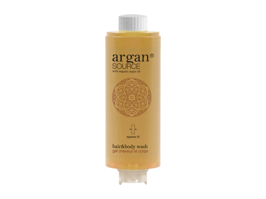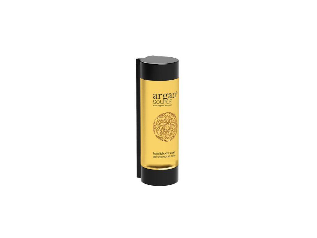 Kosmetyki hotelowe ARGAN SOURCE, które zawierają organiczny olejek arganowy. Eliksir piękna, który stał się niezbędnym kosmetykiem dzięki zawartości przeciwutleniaczy. Posiada również właściwości zmiękczające i nawilżające. Zachwycający zapach i elegancki satynowy design przeniosą Twoich gości do atmosfery Maroka. Wyrafinowana jakość inspirowana złotem pustyni.