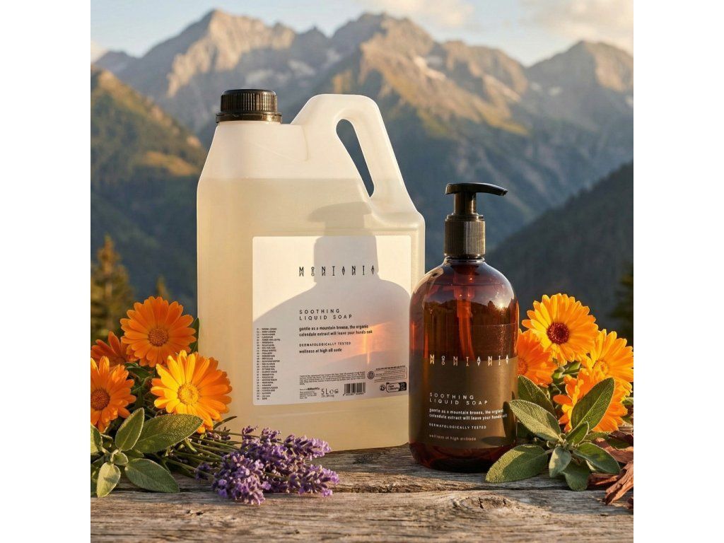 Mydło w płynie MONTANIA w kanistrze 5L przeznaczone do ponownego napełniania włoskiej firmy ALLEGRINI. Czyści i odżywia dłonie, idealny do częstego mycia. Zawiera organiczny ekstrakt glicerynowy z nagietka, który odżywia i równoważy skórę. Dozownik wykonany z plastiku nadającego się do recyklingu i poddanego recyklingowi. Testowany dermatologicznie, nie zawiera silikonu ani barwników.