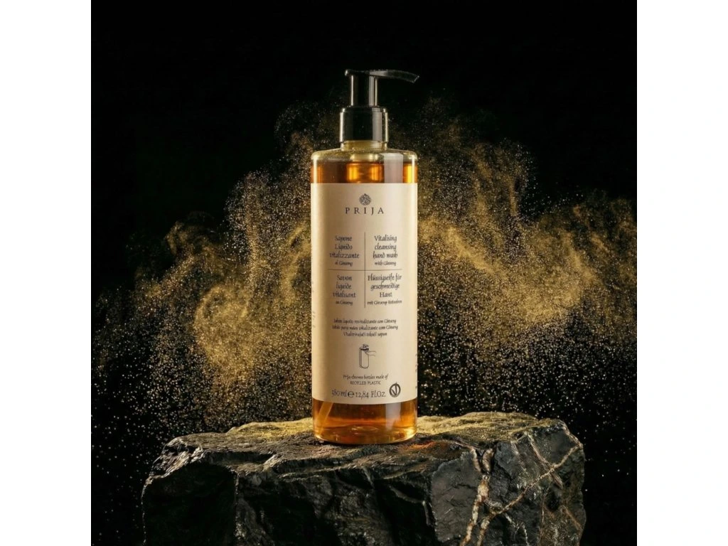 Płynne mydło do rąk z żeń-szeniem do codziennej higieny. Delikatnie oczyszcza dłonie o odurzającym zapachu Prija, zapewniając natychmiastowe uczucie witalności i dobrego samopoczucia.