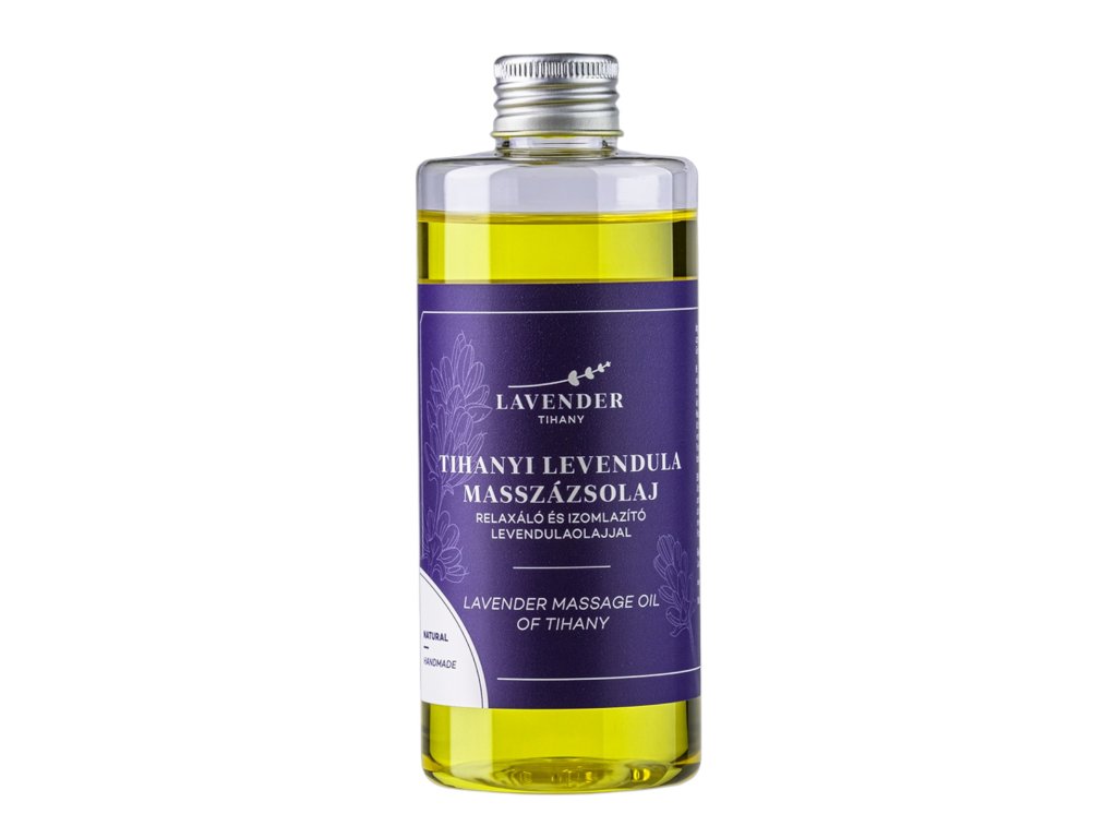 Delikatny olejek do masażu Lavender Tihany z naturalnymi skarbami, takimi jak olej słonecznikowy, olej ze słodkich migdałów i witamina E, chroni i regeneruje skórę. Dzięki specjalnym składnikom szybko się wchłania i pozostawia jedwabiste uczucie. 100% czysty olejek eteryczny z lawendy pomaga zrelaksować ciało i umysł podczas masażu. Różni się od większości olejków do masażu dostępnych na rynku dzięki szlachetnym składnikom, takim jak olej migdałowy, ziołowy olejek lawendowy, skwalen z oliwek czy frakcjonowany olej kokosowy.