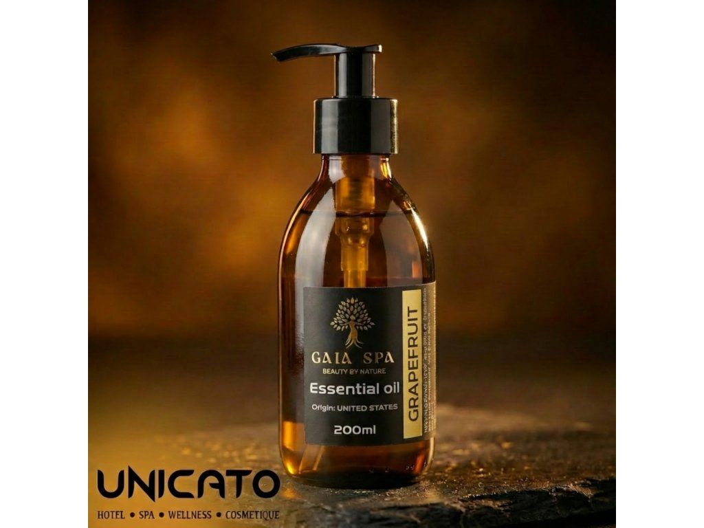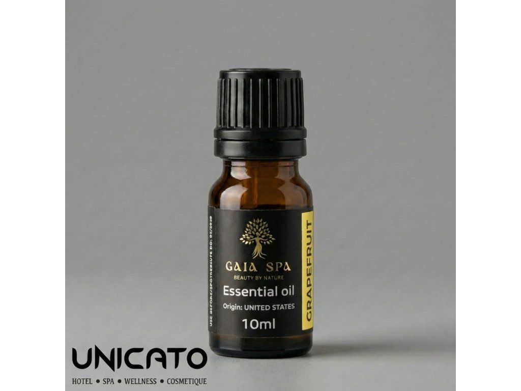 Olejek eteryczny z grejpfruta jest wysoko ceniony w aromaterapii i kosmetyce naturalnej ze względu na swoje działanie pobudzające, oczyszczające i antyseptyczne. Pozyskiwany jest poprzez tłoczenie skórek cytrusów (Citrus × paradisi) i zawiera ponad 90% d-limonenu, który nadaje mu silne właściwości antyoksydacyjne. Oferuje cytrusowy, soczysty i ostry aromat, który plasuje się w czołówce nut zapachowych. Działa antydepresyjnie, pomaga w walce ze smutkiem i stresem, dezynfekuje powietrze, poprawia krążenie krwi w skórze i jest skuteczny w walce z cellulitem.