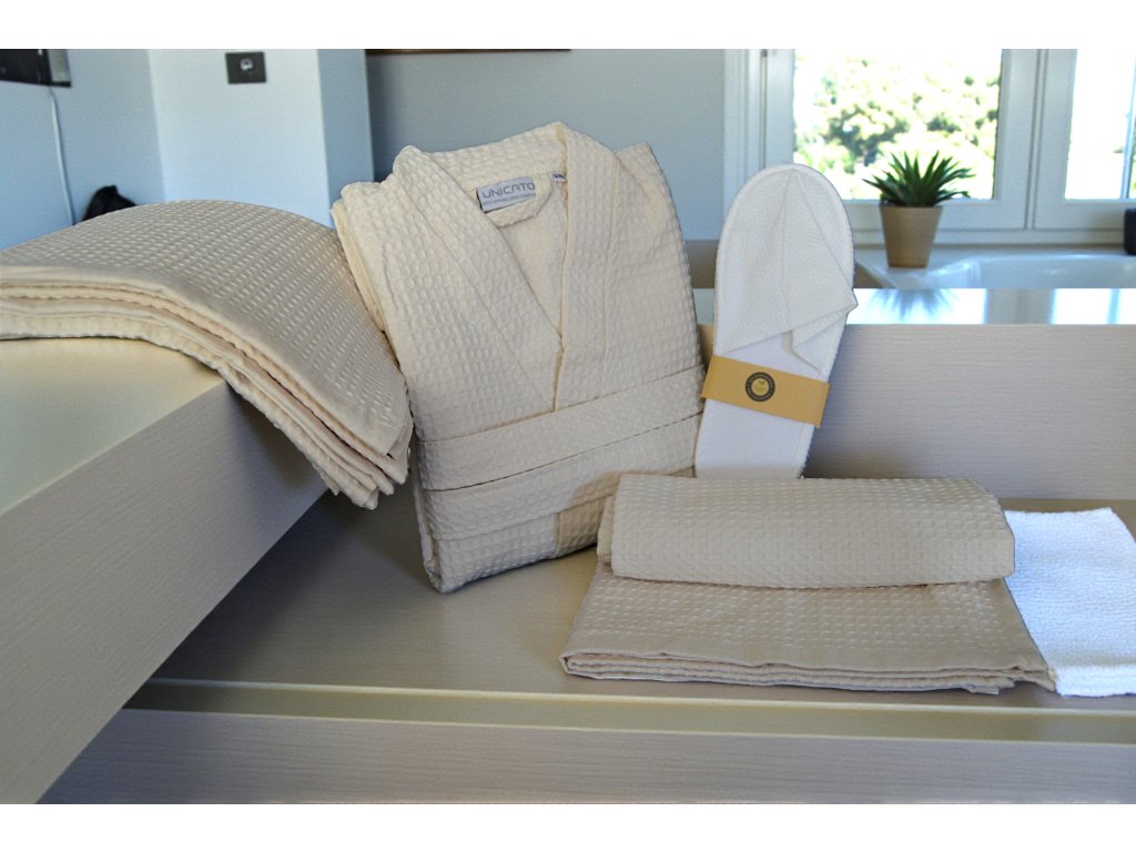 Ręczniki WAFFLE NATUR – doskonały, lekki ręcznik. Skład: 80% bawełna i 20% poliester, gramatura 280 g/m². Ten ręcznik waflowy to popularny wybór dla hoteli. W naturalnym kolorze doskonale uzupełni ofertę hoteli dbających o środowisko. Jest niebielony, niebarwiony i charakteryzuje się zmniejszoną kurczliwością, dzięki czemu wytrzymuje częste pranie.
