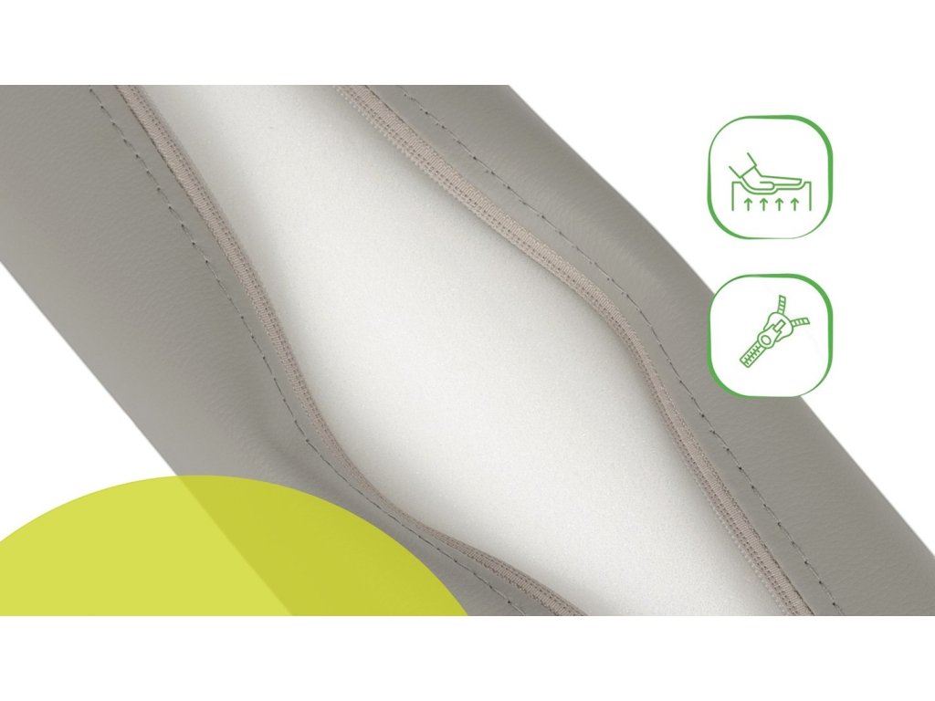 Mocna i trwała tapicerka wykonana z materiału PVC. Odporna na plamy, oleje i środki dezynfekujące. Kolor tapicerki zachowuje swoją intensywność przez wiele lat. Przetestowana.