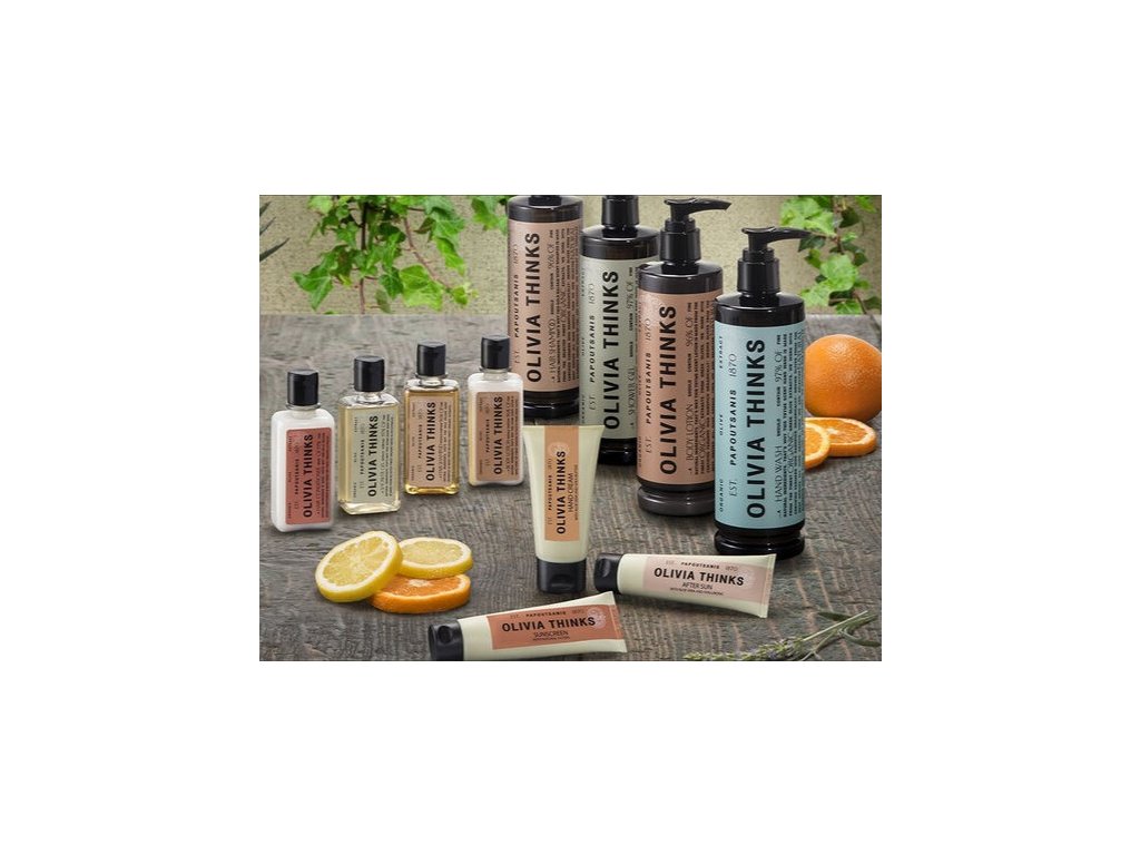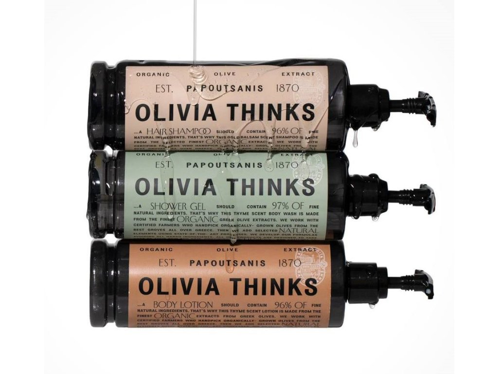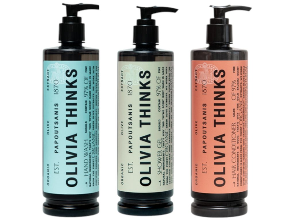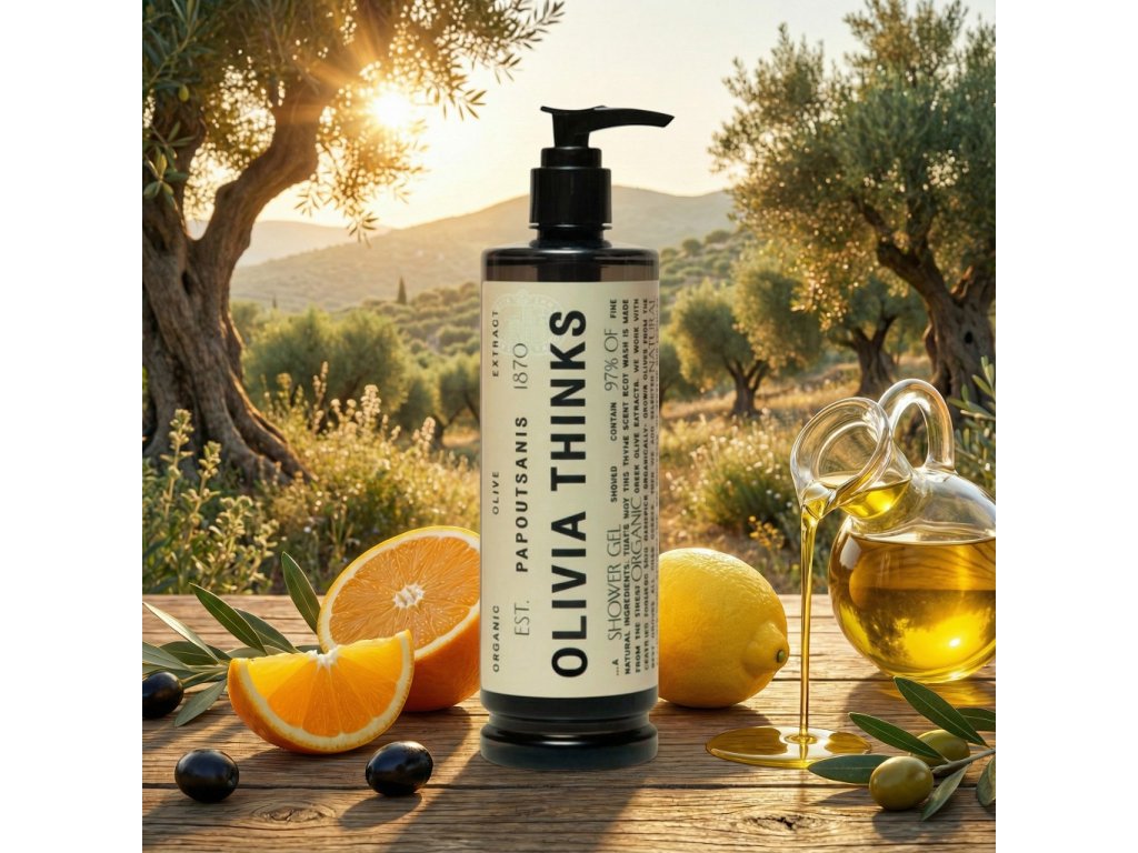 OLIVIA THINKS wyróżnia się delikatną formułą z organicznymi ekstraktami z oliwy z oliwek, aloesem, olejem z nasion smoły etiopskiej i witaminą E, które równoważą potrzeby skóry, utrzymując ją gładką i nawilżoną. Bez chemicznych dodatków, z naturalnymi środkami czyszczącymi i rewitalizującymi zapachami inspirowanymi naturą: różą, cytryną, pomarańczą, tymiankiem, lawendą, bursztynem i drewnem cedrowym, Olivia Thinks zapewnia naturalne uczucie dobrego samopoczucia i odmłodzenia. Wszystkie produkty Olivia Thinks nie zawierają parabenów, SLES, izotiazolinonów, BHT, formaldehydu, EDTA, krzemu, barwników i są dostarczane w opakowaniach w 100% pochodzących z recyklingu i nadających się do recyklingu.