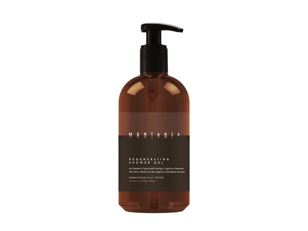 Energetyzujący żel pod prysznic MONTANIA w dozowniku o pojemności 500 ml włoskiej firmy ALLEGRINI, z organicznym ekstraktem glicerynowym z nagietka. Skóra staje się miękka i aksamitna, jakby muśnięta poranną rosą. Dozownik o pojemności 500 ml z możliwością ponownego napełnienia, wykonany z plastiku nadającego się do recyklingu i poddanego recyklingowi. Testowany dermatologicznie, nie zawiera silikonu ani barwników.