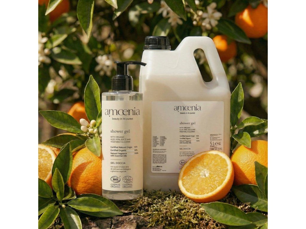 Żel pod prysznic 5L AMOENIA (kanister) wykonany jest na bazie organicznego soku z aloesu i gliceryny roślinnej. Działa łagodząco, nawilżająco i antyoksydacyjnie, oczyszcza i odżywia ciało, pozostawiając skórę miękką i aksamitną.